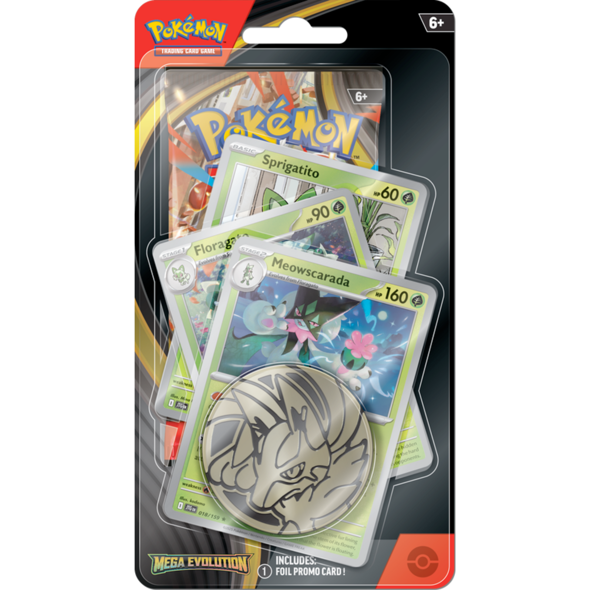 - Three promo cards featuring a full Evolution chain and a cool Pokémon coin!
