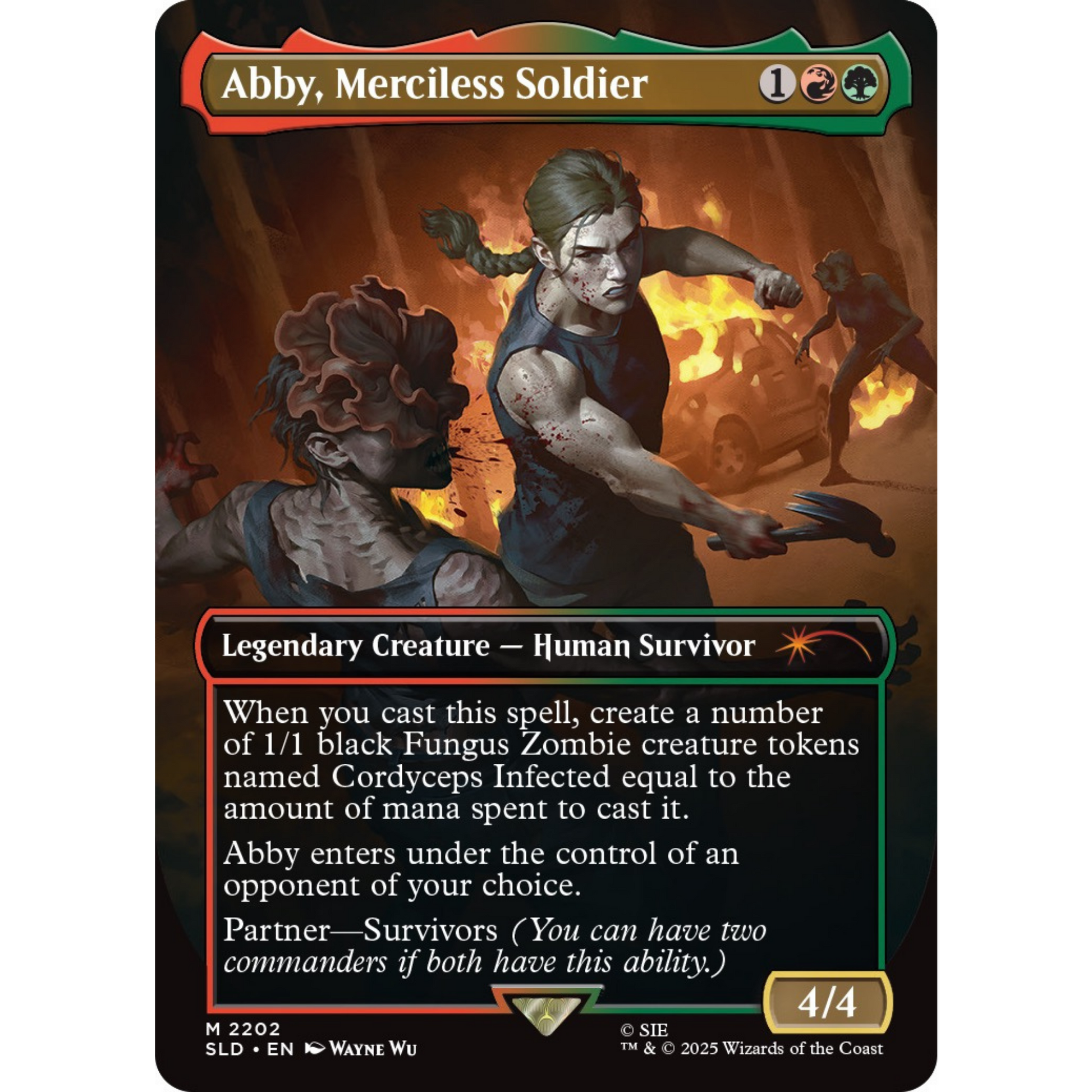 NOTE: The "Survivors" partner mechanic allows the Joel and Ellie cards from Secret Lair x The Last of Us Part I to be played with the Abby and Ellie cards from Secret Lair x The Last of Us Part II. This means that technically, Ellie can partner with her younger self (and Abby can partner with Joel if you're a full monster).